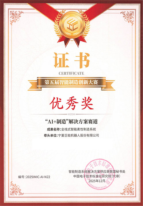 12月26日至27日,第五届智能制造创新大赛“AI+制造”解决方案赛道总决赛在浙江省衢州市成功举办。巨能机器人凭《全栈式智能柔性制造系统》荣获本次大赛优秀奖。